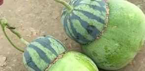 女子在瓜地发现“东西瓜”:它妈是西瓜 它爸是冬瓜